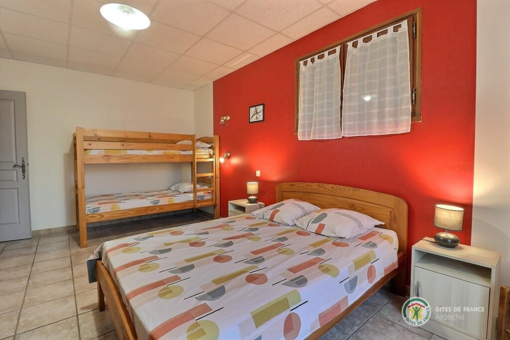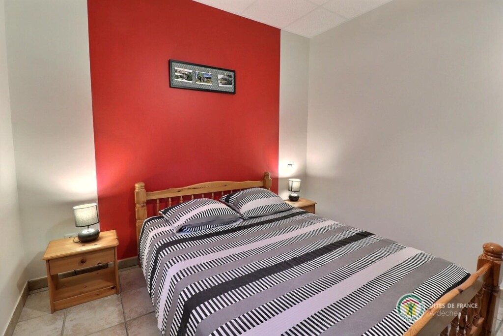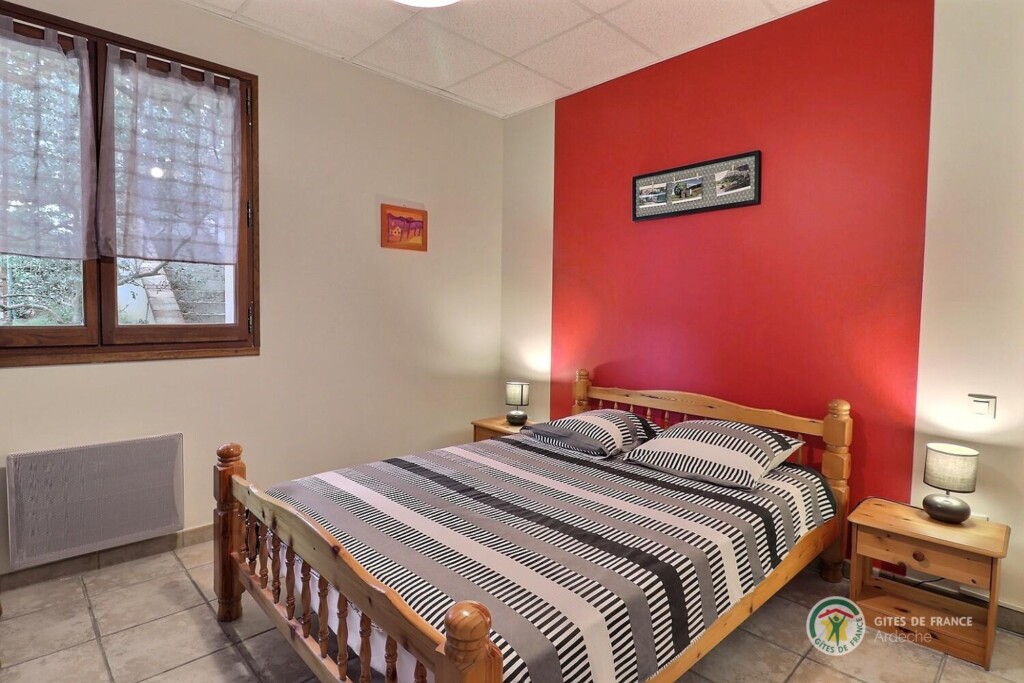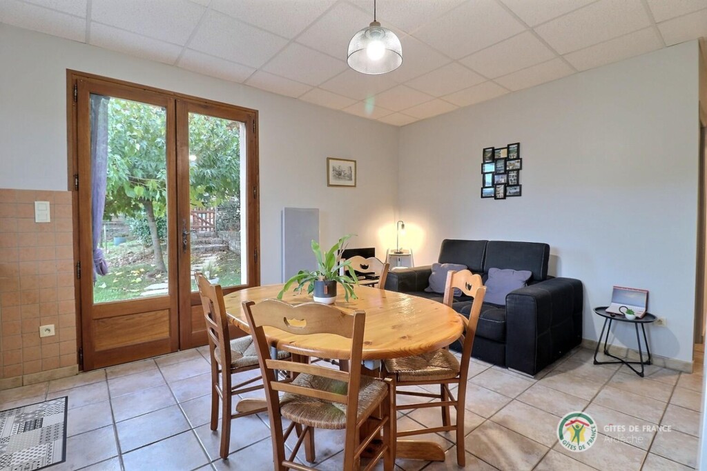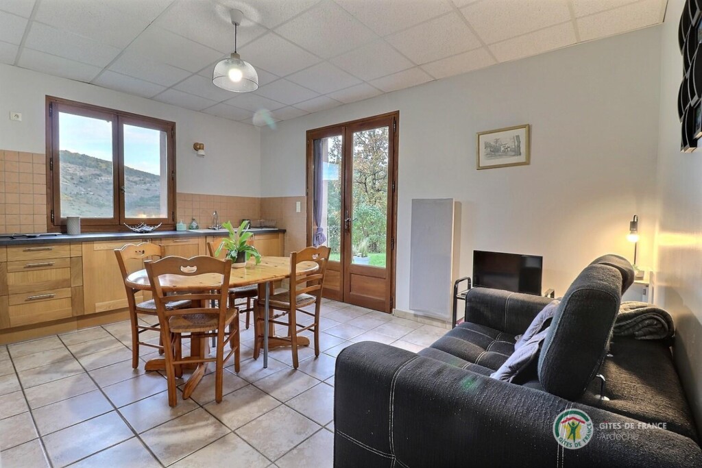 Au centre de l'Ardèche et à 8km d'Aubenas, où se côtoient châtaigniers, vignes, pins et genêts, gîte aménagé au r.d.c. de la maison du propriétaire, accès et terrain clos en pelouse privatifs. Séjour, coin-cuisine, 2 chambres. Terrasse.