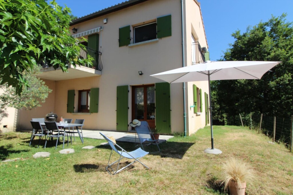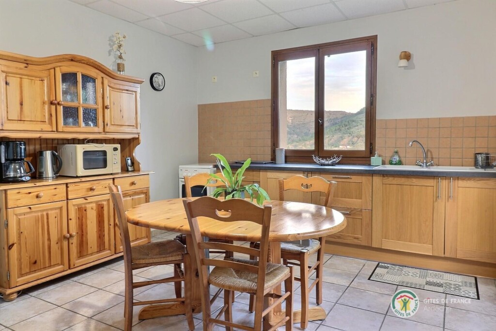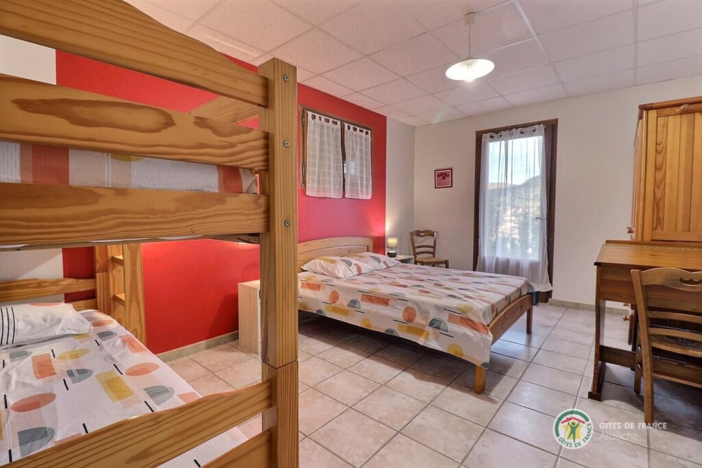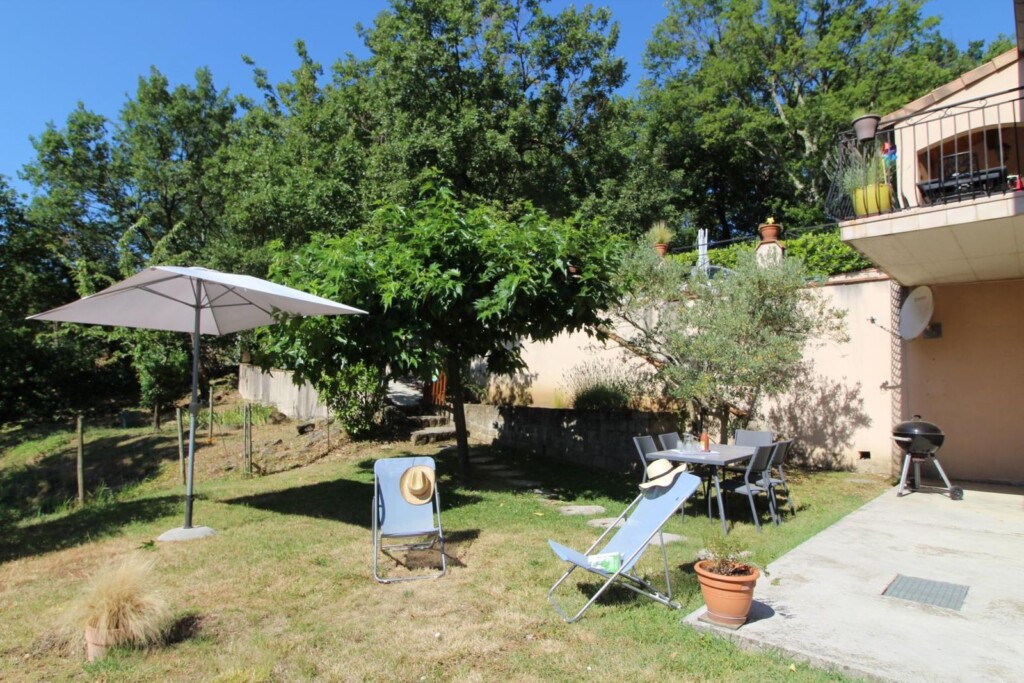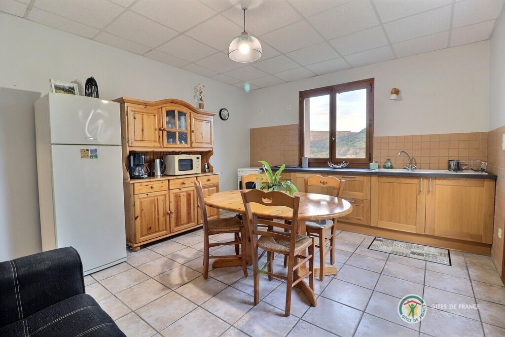 Au centre de l'Ardèche et à 8km d'Aubenas, où se côtoient châtaigniers, vignes, pins et genêts, gîte aménagé au r.d.c. de la maison du propriétaire, accès et terrain clos en pelouse privatifs. Séjour, coin-cuisine, 2 chambres. Terrasse.